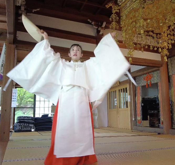 10月の巫女舞お稽古は「豊栄ノ舞」です。体験会も開催しています。詳細はご連絡ください。